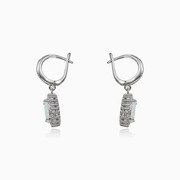 Dlouhé náušnice ze stříbra ryzosti 925/1000 s povrchovou úpravou rhodiem, zdobené bílým opálem oválného tvaru v kombinaci s bílými krystaly diamantového brusu.
