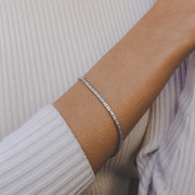Prinzessschliff-Kristalle in einem winzigen Tennis-Armband aus Sterlingsilber.
