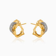 Ohrringe aus 18-karätigem Gelb- und Weißgold in Form eines Bandes, kombiniert mit Diamanten in Pave-Fassung 0,95 Karat, mit Omega-Rückenverschluss.