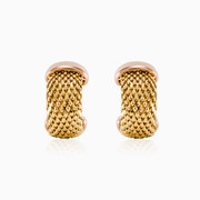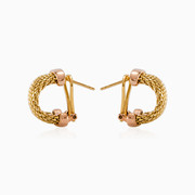 Maschenohrringe im Vintage-Halbreifen-Stil aus 14 Gelbgold kombiniert mit Roségold an den Rändern. Sie werden mit Omega-Rückenverschluss geliefert.