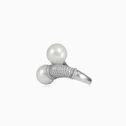Faszinierender Ring aus Sterlingsilber, kombiniert mit zwei rund geschliffenen Perlen und an den Seiten mit Kristallen verziert.