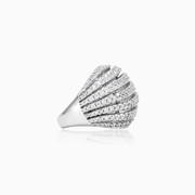 Massiver Ring aus Sterlingsilber mit mehreren Reihen, die mit weißen Kristallen verziert sind, die Meereswellen bilden.