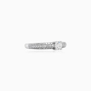 Dieser klassische, funkelnde Verlobungsring aus 18 Kt. Weißgold ist mit einem großen Solitär-Diamanten von 0,27ct. besetzt, der von kleineren Diamanten mit einem Gesamtgewicht von 0,33ct. umgeben ist.