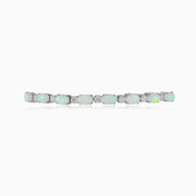 Tennis white opal bracelet for women combined with oval cut opal and decorated with round cut crystals.