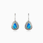 Pear blue opal paste earrings made of sterling silver and combined with halo of crystals.