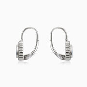 Bezel blue opal pear lever earrings
