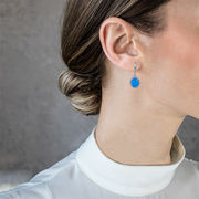 Classic royal design earrings in sterling silver combined with oval cut blue opal and halo of white crystals.
