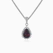 Royal sterling silver pendant for women combined with pear cut cabochon black opal and halo of crystals around it.