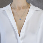 Colgante artesanal de plata de ley con ojo del mal decorado con esmalte azul y cristales blancos.