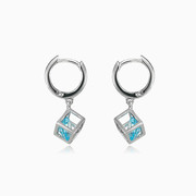 Modernos pendientes de plata para mujeres combinados con topacio de corte redondo en una caja de plata.
