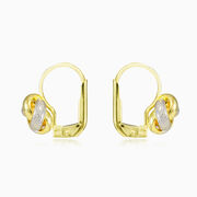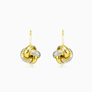 Pendientes anudados de oro amarillo y blanco con alto brillo y acabado mate.