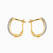 Boucles d'oreilles classiques en or jaune et blanc combinées à des cristaux naturels sertis sur pavé. Cette belle paire de boucles d'oreilles a un fermoir à l'arrière.