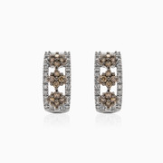 Séduisantes boucles d'oreilles en or blanc 18 carats avec des diamants blancs et champagne d'un poids total de 0,95 ct. Ces élégantes boucles d'oreilles ne doivent manquer dans aucun écrin à bijoux.