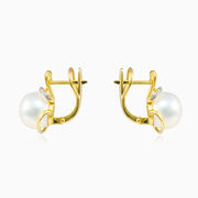 Boucles d'oreilles classiques en or jaune 14K avec une perle d'eau douce ronde et des diamants.