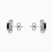Élégants clous d'oreilles carrés en onyx noir en argent sterling et combinés avec un halo de cristaux.
