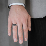 Кольцо с чёрной эмалью и кристаллом Мужские Кольца High polished N.3