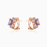 Изысканные серьги из розового золота 750 пробы с натуральным аметистом огранки "princess" и бриллиантами подарят образу нотку изысканности и элегантности.