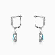 Элегантные серьги из родированного серебра 925 пробы с натуральным топазом "London blue" в форме капли, в сочетании с белыми кристаллами. Дизайн серёжек представляет собой идельное сочетание роскоши и элегантности.