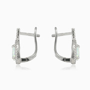 Висячие серьги из родированного серебра 925 пробы с натуральным белым опалом овальной огранки, который украшают белые кристаллы.
