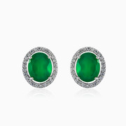 Náušnice z rhodiovaného stříbra ryzosti 925/1000 s přírodním zeleným nefritem oválného tvaru, který lemují bílé krystaly.