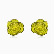 Dámské náušnice z rhodiovaného stříbra s vltavínem ve tvaru růžičky.
