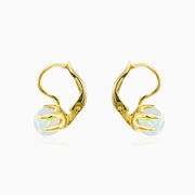 Unikátní náušnice vyrobené ze 14kt žlutého zlata, a zdobené bílým opálem ve tvaru kuličky, v lesklé povrchové úpravě se zapínáním na klapku.