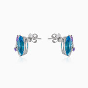 Náušnice z bílého 14K zlata s modrým topazem broušeným ve tvaru "marquise" v kombinaci s bílými diamanty o veliksti 0,43ct, a také ametystem ve tvaru "marquise" a kulatým rubellitem.
