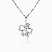 Jemný přívěsek z rhodiovaného stříbra ve tvaru čtyřlístku s krásnou kombinaci krystalů ve tvaru srdce a diamantového brusu.