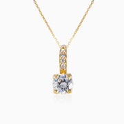 Dámský přívěsek z 14K žlutého zlata zdobený jedním velkým krystalem a pěti drobnými krystaly diamantového brusu.