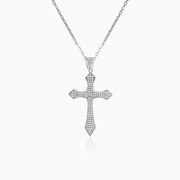 Wunderschöner Pave-Kreuz-Anhänger aus Sterlingsilber mit weißen Kristallen, komplett von Hand gefertigt.
