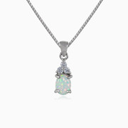 Anhänger aus Sterlingsilber für Damen, kombiniert mit weißem Opal im Ovalschliff und verziert mit drei Kristallen an der Spitze.