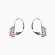 Königliches Design Sterling Silber Ohrringe für Frauen kombiniert mit Birne geschnitten Rosenquarz und Halo von Kristallen.