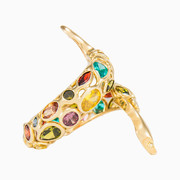 Dieser hübsche Mosaico-Schlangenring ist komplett von Hand aus 14-karätigem Gold mit vielen Farbsteinen in verschiedenen Formen und Größen gefertigt.