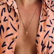 Kruzifix-Anhänger aus 14 Kt. Gelbgold für Halskette mit handgefertigten Details.