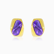 Unique 14K gold earrings with a pyramid-shaped amethyst.