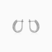 A style essential, these sleek rhodium plated sterling silver semicircle flat hoop earrings with white shiny crystals are designed to go with anything. So easy to wear and perfect for everyday chic.