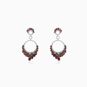 Modern sterling silver massive earrings combined with garnets and crystals. Perfect for a special occasion.