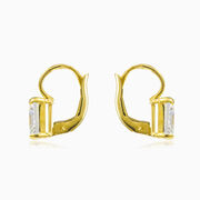 Radiant cut white crystal set in 14K yellow gold drop earrings.