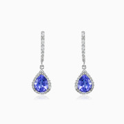 Elegant sterling silver earrings for women combined with pear cut tanzanite and decorated with crystals.