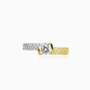 14K yellow gold ring combined with central round crystal and pave set crystal on both sides of the ring.