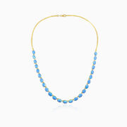 Classic necklace in 14K yellow gold, with bezel-set oval-cut blue opals