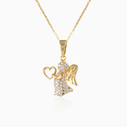 Lovely angel pendant is made of 14 kt yellow gold and decorated with pave set crystals.