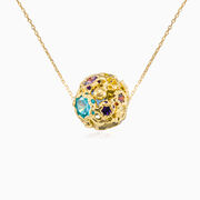 Divine Mosaico ball pendant in 14K yellow gold, decorated with colour stones of different shapes and sizes.