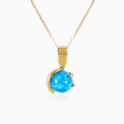 Blue opal pendant is unique temporary design in 14 kt gold combined with light blue ball of opal.