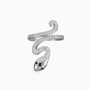 Sterling silver ring in shape of adjustable snake combined with crystals and onyx eyes.