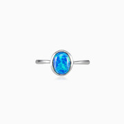 Simple sterling silver ring for women combined with oval cut blue opal.