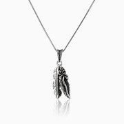 Plumas nativas es un collar único hecho de dos plumas diferentes hechas a mano de plata esterlina.