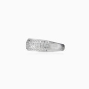 Anillo de plata esterlina tipo banda para mujeres combinado con cuatro filas de cristales.