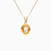 Colgante de camafeo para el collar de oro amarillo y tapa de camafeo de coral hecho a mano.