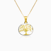 Colgante árbol de la vida realizado a mano en oro amarillo y blanco de 14 quilates, en forma ovalada.